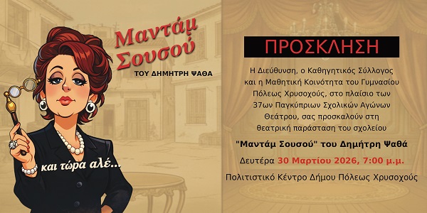 Με την ευκαιρία της έναρξης της νέας σχολικής χρονιάς σας καλωσορίζω στην ανανεωμένη ιστοσελίδα του Γυμνασίου Πόλεως Χρυσοχούς και σας εύχομαι μια ευχάριστη και ενδιαφέρουσα πλοήγηση.