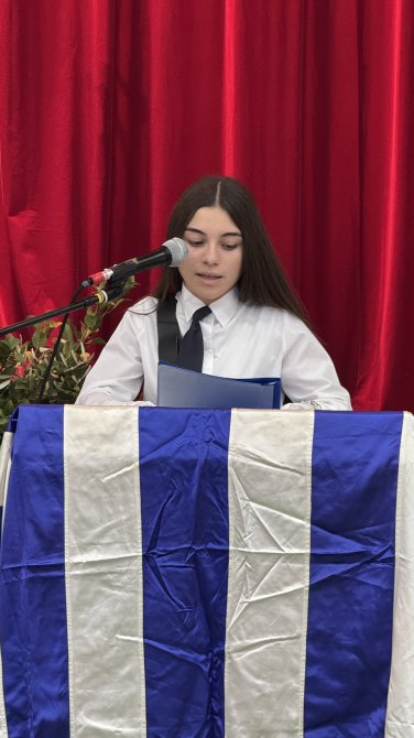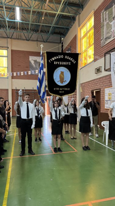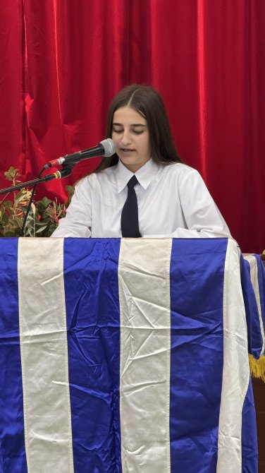 <<Ορκιζόμαστε ότι μεγαλώνοντας κάτω από τη σκιά των ιερών συμβόλων του Έθνους και του Κράτους μας, θα τα διαφυλάττουμε άγρυπνα και θα αγωνιζόμαστε με αυτοθυσία για τα μεγάλα ιδανικά του Ελληνισμού και την προστασία της ιδιαίτερης μας πατρίδας>>