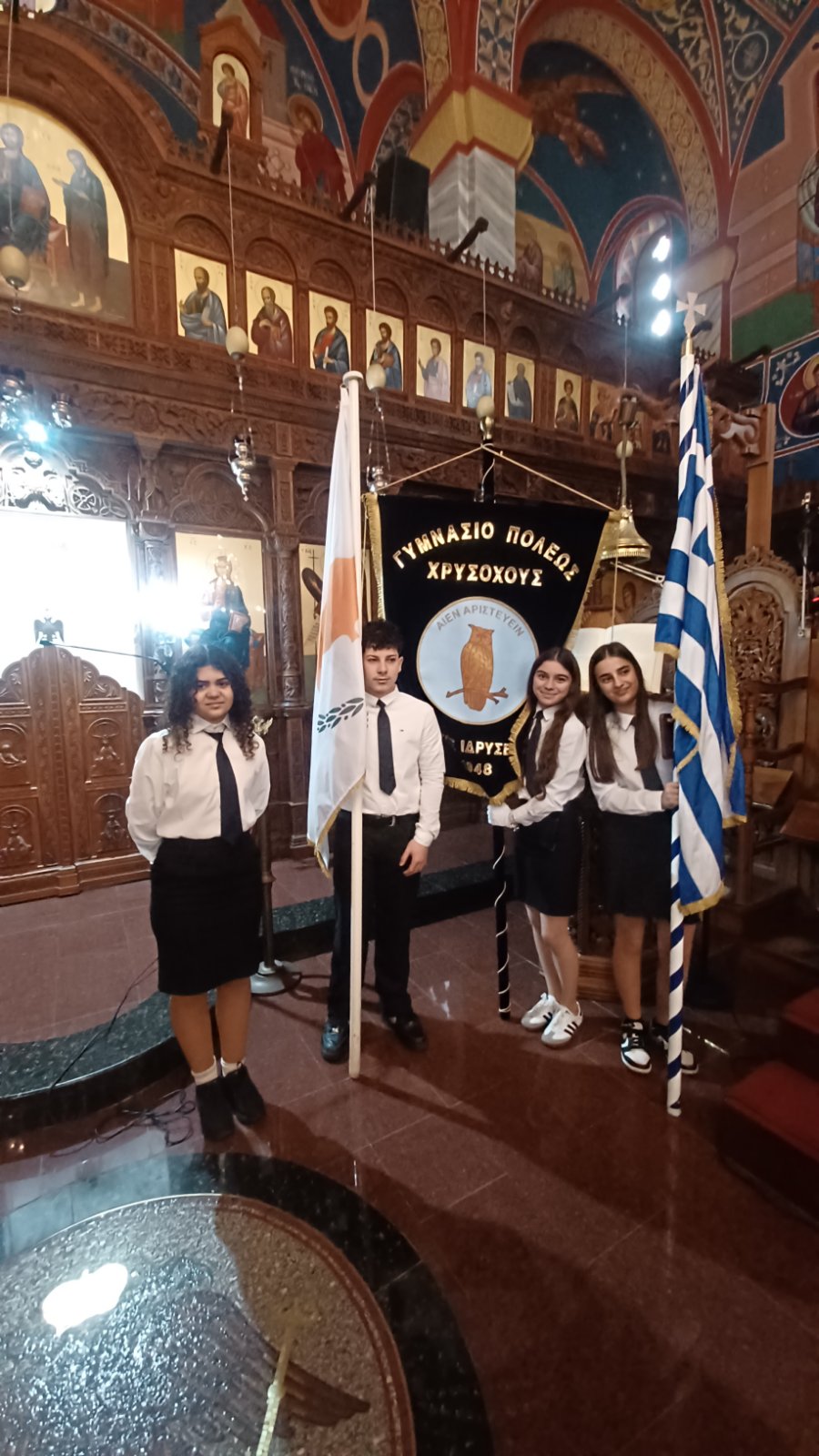 Εκπροσώπηση Γυμνασίου Πόλεως Χρυσοχούς στον Εκκλησιασμό για τη Γιορτή των Τριών Ιεραρχών και των Ελληνικών Γραμμάτων
